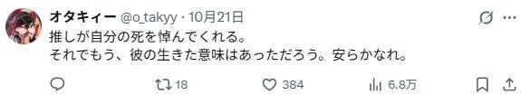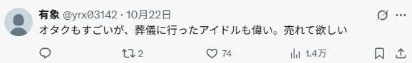 有日本网友直言,希望自己将来走到人生终点的时候,也能够让偶像亲自来送最后一程……