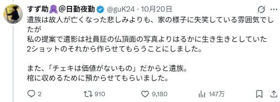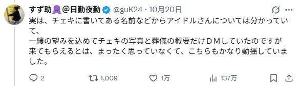 日本一位殡仪社的员工@guK24平时也有追星,能够理解其他粉丝的心理。