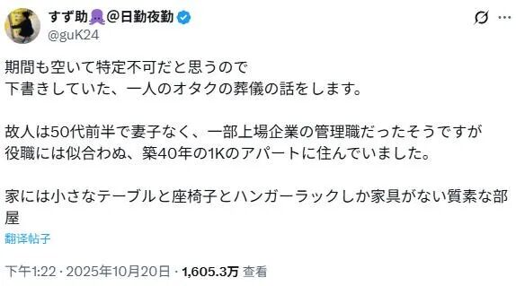 “因为已经过了一段时间,我想应该不会被认出来,所以就来分享某位偶像迷的葬礼的故事。