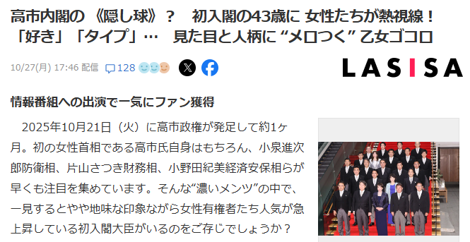 原以为最引人注目的会是担任防卫大臣的小泉进次郎,但可惜这位曾以38岁之龄成为最年轻男性阁僚的战绩,在这届同僚面前,完全不~值~一~提啊