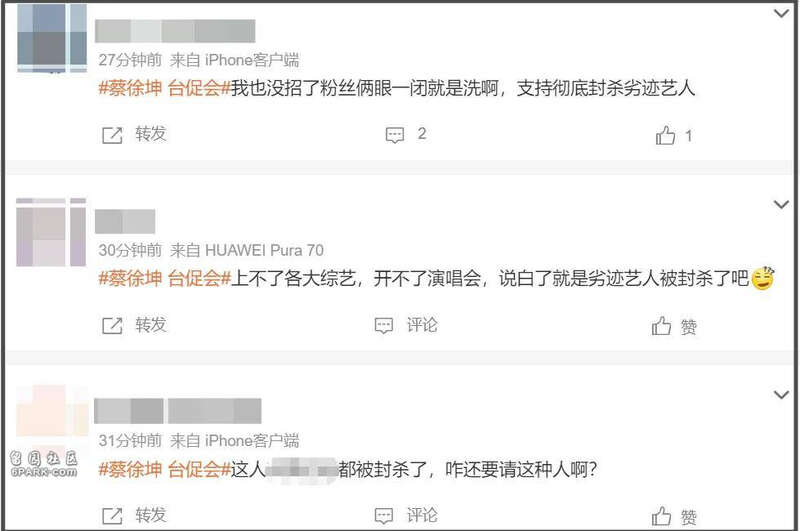 在网友看来,这属于严重投机行为,而且还是在两岸交流演出上耍小聪明,网友纷纷呼吁台促会抓紧时间维权追责、及时止损吧,先把蔡徐坤限制演出状态调整回来,让他继续被封杀着吧!