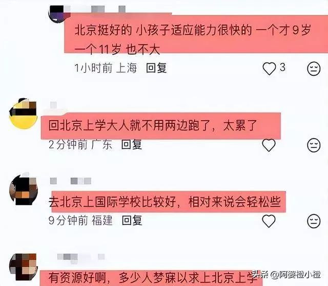 马筱梅之前就跟身边人说过,孩子们在台北有自己的好朋友,有熟悉的老师,强行把他们转到北京,反而会让孩子有心理压力。