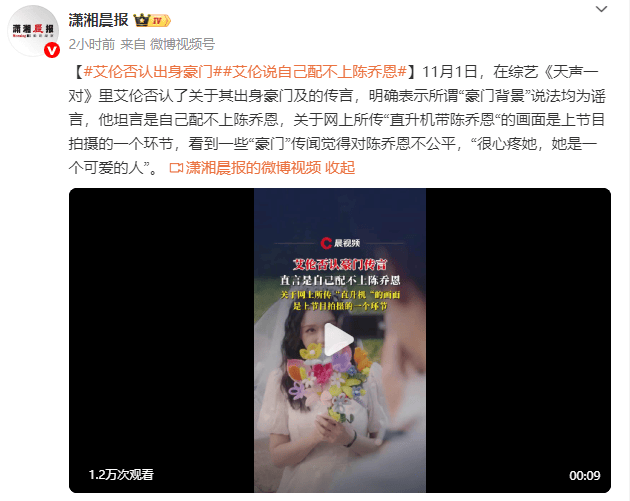 11月1日,在综艺《天声一对》里艾伦否认了关于其出身豪门及的传言,明确表示所谓“豪门背景”说法均为谣言,他坦言是自己配不上陈乔恩,关于网上所传“直升机带陈乔恩”的画面是上节目拍摄的一个环节,看到一些“豪门”传闻觉得对陈乔恩不公平,“很心疼她,她是一个可爱的人”。