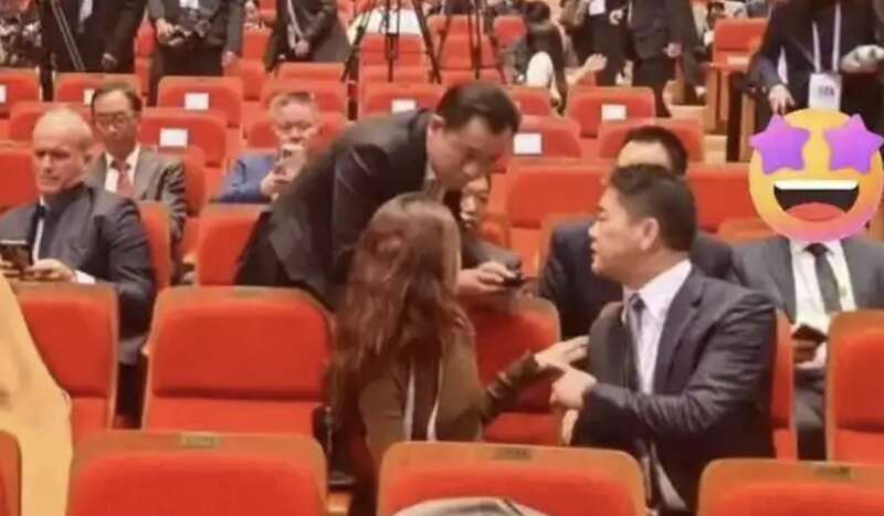 当众给刘强东甩脸子,坐在丈夫旁边,却始终黑脸。
