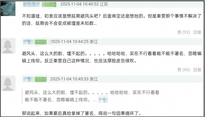 率先做出反应的是《爱情没有神话》播出方,该剧原定11月上星央视播出,争议曝光后从平台排播撤下,网传《四喜》空降接档播出,相关宣传目前展开。