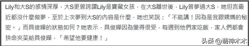 活动现场小S二女儿心情相当不错,台媒都用“甜笑”来形容她的状态,被问到姨妈大S,小S二女儿直言都没有“梦”到姨妈了,被问到姨父具俊晔,小S二女儿瞬间话多了起来。