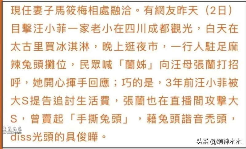 反观S家,眼见着汪小菲、马筱梅和大S留下的一双子女越来越亲密,台媒报道重点竟然放在了别人买兔头是内涵具俊晔上,甚至重提大S和张兰恩怨过往。