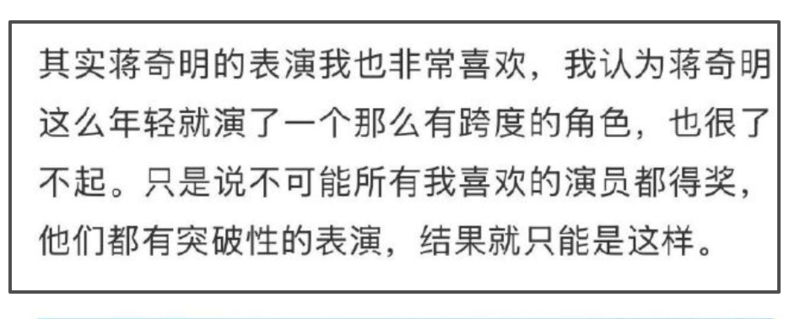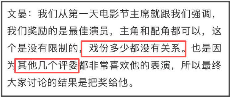 文晏随后补充了一句,表示自己很喜欢蒋奇明的表演,可惜不是她喜欢的演员就能得奖。暗示王传君得奖,也非自己能决定。撇清了关系。