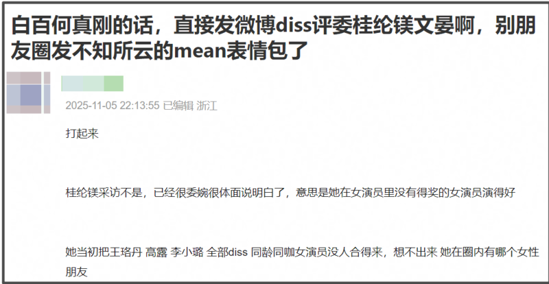 由此可见,白百何开撕的对象很可能是电影《春树》,她认为片方过河拆桥,把她当垫脚石。但是问题来了,你撕电影方就撕电影方,大大方方说不行吗?