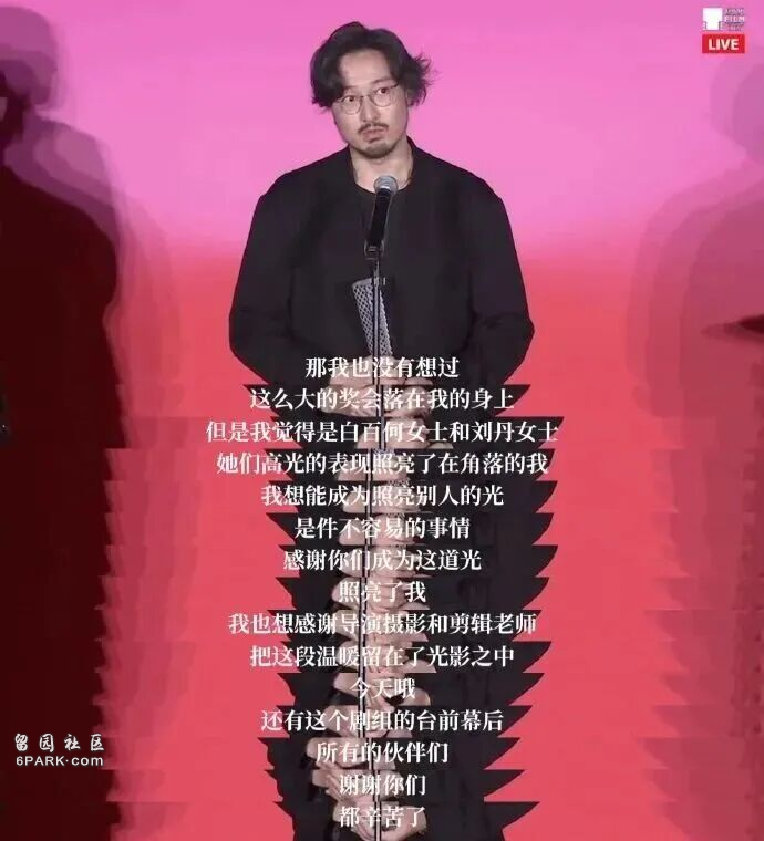王传君领奖的时候应该已经知道舆论风向,显得面色凝重,他在获奖感言中表示:“我是一个配得感很低的人,我喜欢躲在团队的角落,我也不喜欢说很多话,成为焦点这件事会让我感到恐惧和压力。”紧接着他还着重感谢了电影里的两位女演员,“我觉得是白百何女士和刘丹女士她们高光的表现,照亮了在角落的我。能成为照亮别人的光是不容易的事情,感谢你们照亮了我。”