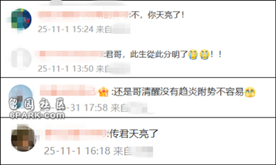 10月31日-11月2日,因古二曝光《繁花》剧本会录音,王家卫的公众口碑一夜之间急转直下,2016年电影《摆渡人》差评如潮时半个娱乐圈曾为其站队的事被翻出来了,王传君当年那句逆流而上的“我不喜欢”被网友奉为“人间清醒”,“关谷神奇,此身分明了”。