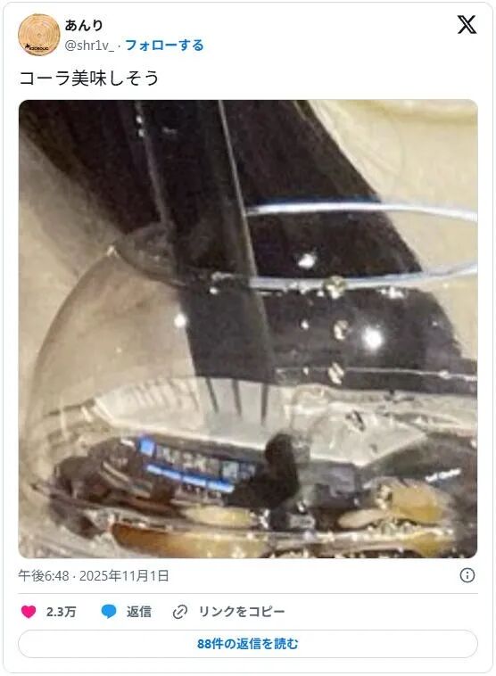 原来,是有日本网友扮起柯南,不断放大藤咲AZU的照片,最终在透明的可乐杯盖上,看见了拍摄照片者的倒影。