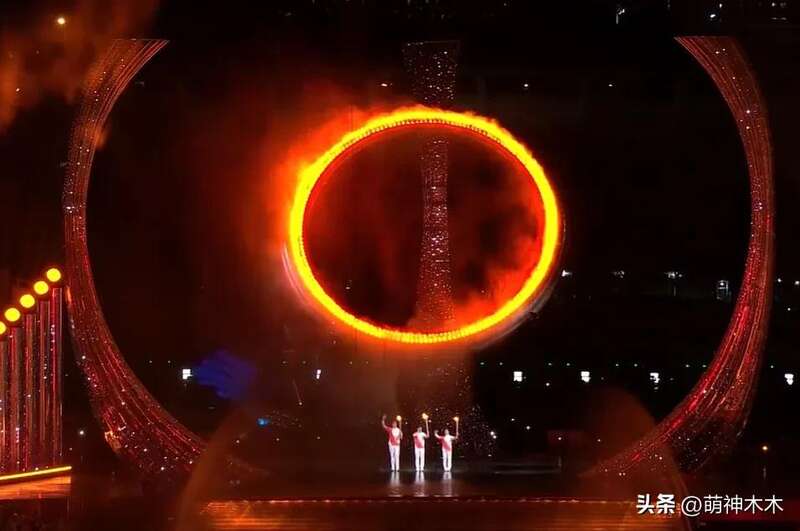 就用水舞台之上的火炬传递来结尾吧,郭晶晶、梁伟铿等运动员现身,新老运动员传承交替点燃火炬,在水中跑起来都带风呢。