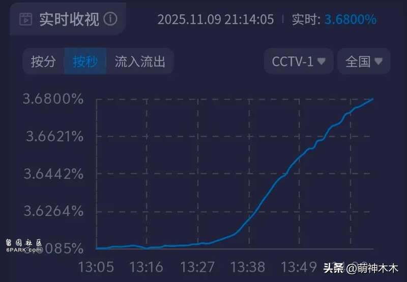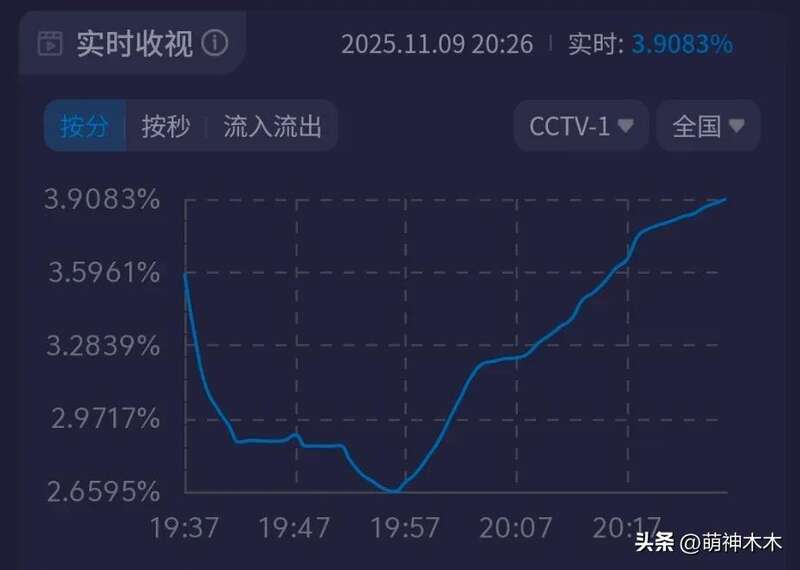 与网友好评一起来的还有收视率上涨,十五运会运动员入场环节结束,开幕式实时收视冲到3.9%,达到最高点。