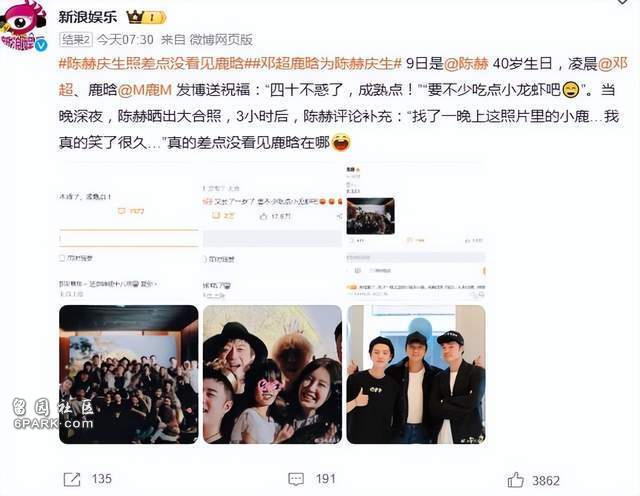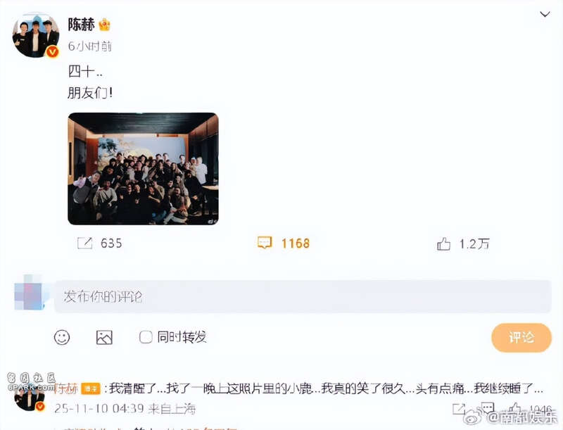 11月9日,陈赫在40岁生日这天,结结实实给网友们带来了一轮“找茬”挑战。当晚他在微博晒出星光熠熠的生日聚会大合照,配文“四十 朋友们!”,却因好友鹿晗在照片中“隐身”而意外引爆热搜。