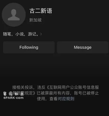 另据红星新闻报道,9月23日下午,编剧“古二”的微信公众号“古二新语”被封,多名此前关注了该账号的用户表示已收到该账号被屏蔽通知,当前微信中已不可搜索到“古二新语”账号。