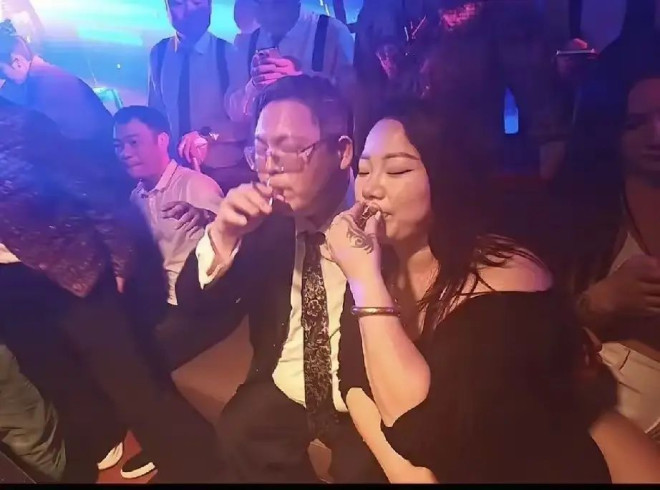 当天,向佑在酒吧内,显得相当“有派头”,身后还跟着几位身着保安制服的工作人员,他的登场仿佛是要用奢华和显摆来征服一切。而他这次带着的新女友,穿着清凉,一字肩的上衣和油腻的发型搭配,二人浑身泛着油光,显得既油腻又颓废。