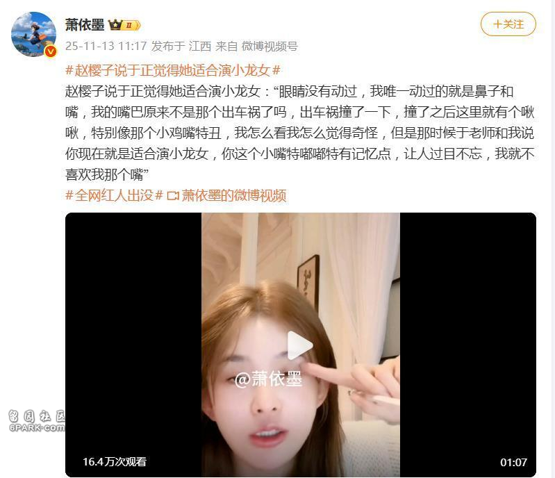 据网友11月13日报道,事件源于赵樱子的一场直播。她在与网友互动时,不仅坦诚自己动过鼻子和嘴巴,还主动提及了著名制片人于正。她绘声绘色地描述,自己曾因车祸导致嘴唇留下“啾啾”,像“小鸡嘴”一样让她耿耿于怀,但于正老师却从中看到了独特的美感。据她转述,于正当时对她说:“你现在就是适合演小龙女,你这个小嘴特嘟嘟特有记忆点,让人过目不忘。”一番话,似乎为自己独特的嘴唇找到了权威的时尚背书。