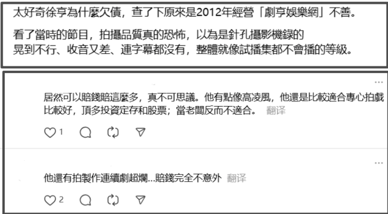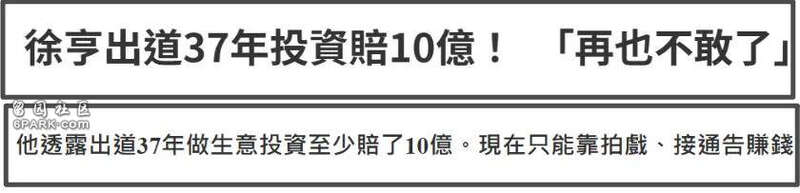然而很多时候,一个人的人生转折点就在于“走出舒适区”——徐亨出道小40年,反反复复累积下来,竟然欠下10亿台币债务,折合成人民币也有2亿多,全是因为他盲目投资。