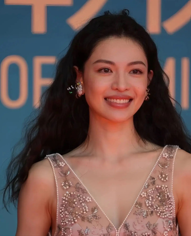 头发低矮着扎起来,妆容也很淡雅,没有出席活动的那种匆忙和紧张,全身都是松弛与自在,有作品就是底气。