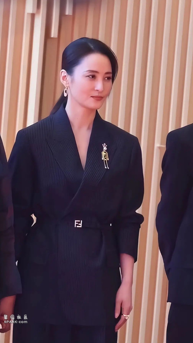 蒋勤勤这造型,很符合她的风格。一身藏蓝色套装,配上精致想胸针,有一种大姐大的派头。这模样,就像是来视察工作的领导,满眼都是霸气。