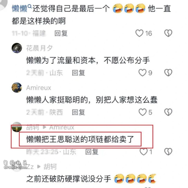 也难怪懒懒会觉得自己是最后一个,毕竟她在王思聪这里得到了很多。可懒懒本人也不缺钱,公然变卖王思聪送的礼物,只有一个可能就是俩人已经分手了。