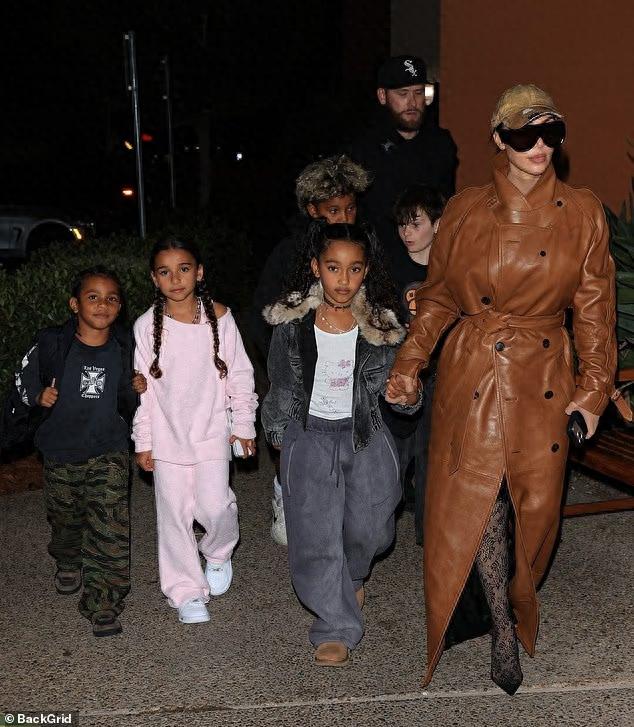 当地时间11月15日晚,金·卡戴珊久违地带着她的四个孩子中的三个,出现在“街拍”中。除了9岁的圣、7岁的芝加哥以及6岁的赞美诗之外,她还带上了侄女梦·卡戴珊以及圣的一个朋友。