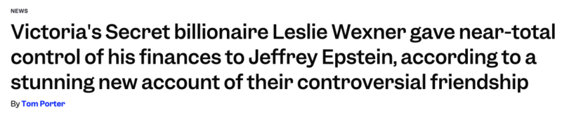 熟悉Wexner的人都知道,他极度谨慎、极度控制欲强,鲜少把权力交给任何人。可他偏偏把一整套商业帝国的钥匙交给了 爱泼斯坦。