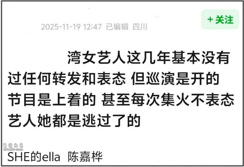 联想到SHE其他两位成员的态度,网友更加不信任陈嘉桦了。