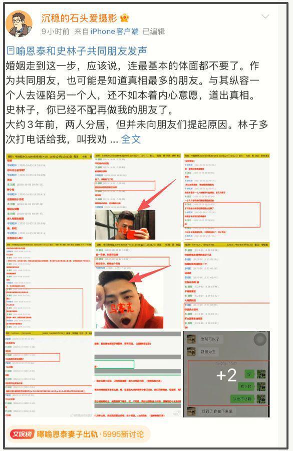 最初是娱记爆料喻恩泰出轨,拒付孩子抚养费,还提前转移资产拉黑史林子;紧接着喻恩泰好友反击,甩出女方和多位男子的露骨聊天记录,称是女方出轨在先还不让喻恩泰看孩子。娱记也不甘示弱,甩出喻恩泰和美女律师约会的视频,称律师老公也为此在闹离婚。