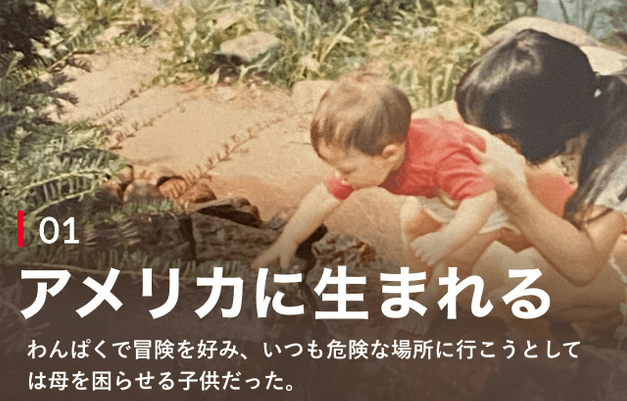 她的父亲是美国人,母亲是日本人。小时候的她很调皮,喜欢冒险,总是去危险的地方,这一度让母亲很担心。