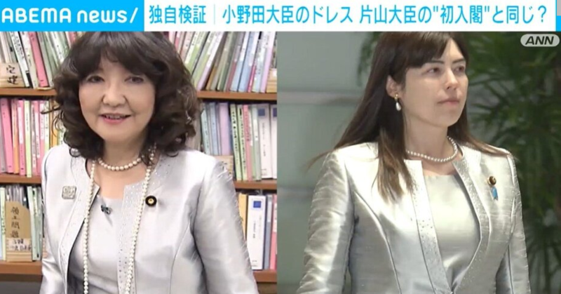 不过,眼尖的网友很快发现,她穿的衣服,似乎财务大臣片山皐月也穿过。甚至,有人怀疑她是借了片山大臣的衣服。