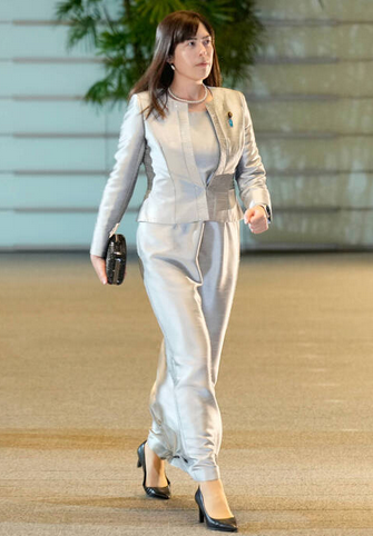 在任命仪式上,小野田纪美身穿一袭银色礼服,与一众阁员合影。她身材高挑,走路步步生风,在人群中格外醒目。
