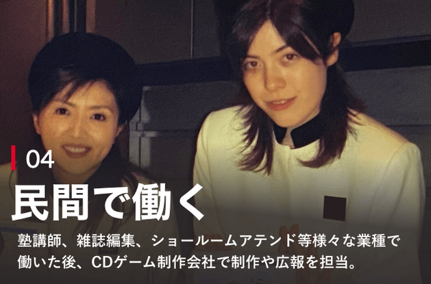 之后的一段时间,小野田纪美在游戏CD制作公司工作,主要负责制作和宣传。