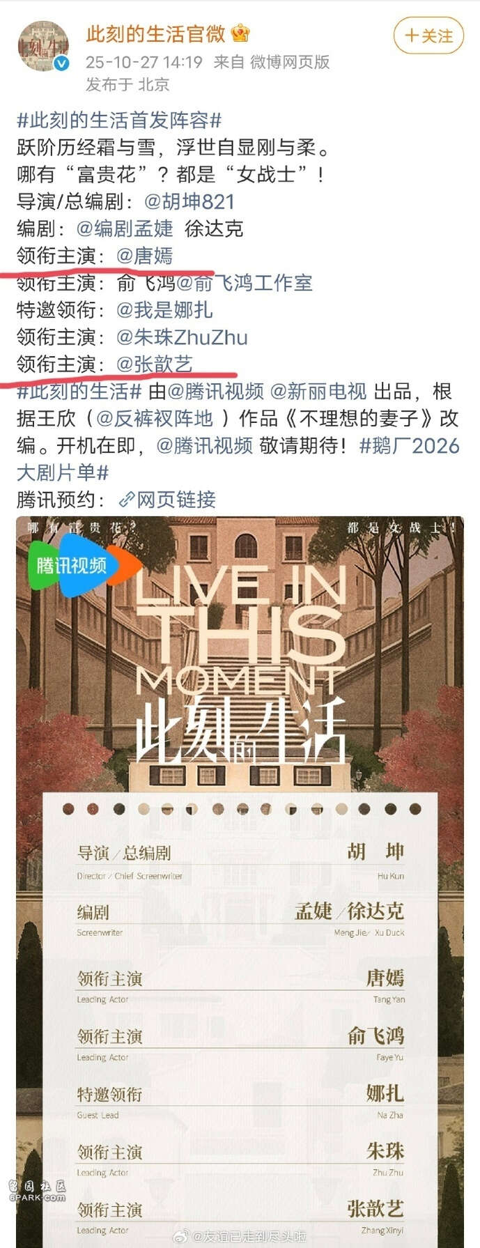 然而,这次“手滑”的时机格外微妙——张歆艺与唐嫣即将合作新剧《此刻的生活》,两人同为领衔主演。该剧原定2025年12月开机,后因资金问题延期至2026年。在这个节骨眼上点赞合作演员的负面婚姻爆料,难免让人质疑是否在借机炒作,或是在暗示某些“内幕”。部分网友已开始担忧,此事是否会影响到未来剧组的合作默契。