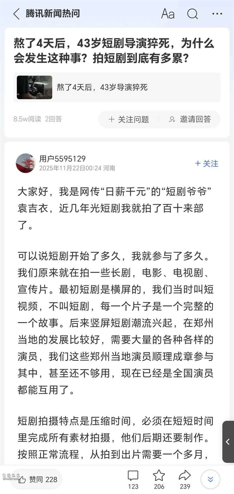 43岁短剧导演猝死 干这行有多累?“短剧爷爷”发声