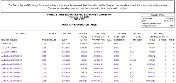 根据 SEC 规定,管理资产规模超过 1 亿美元的基金经理,必须在每个季度结束后的 45 天内,公布一份名为 “13F 表格 ” 的文件,以披露股票、债券方面的持仓。