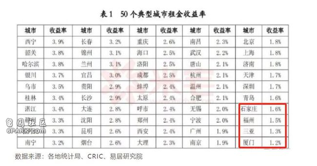 我们发现,厦门、三亚、福州、石家庄这几个城市的房价收入比很高,租金回报率却非常低。