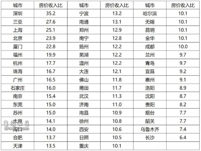 深圳、三亚、上海、北京和厦门,房价收入比位列前5,说明这些城市的购房难度都属于宇宙级的存在。