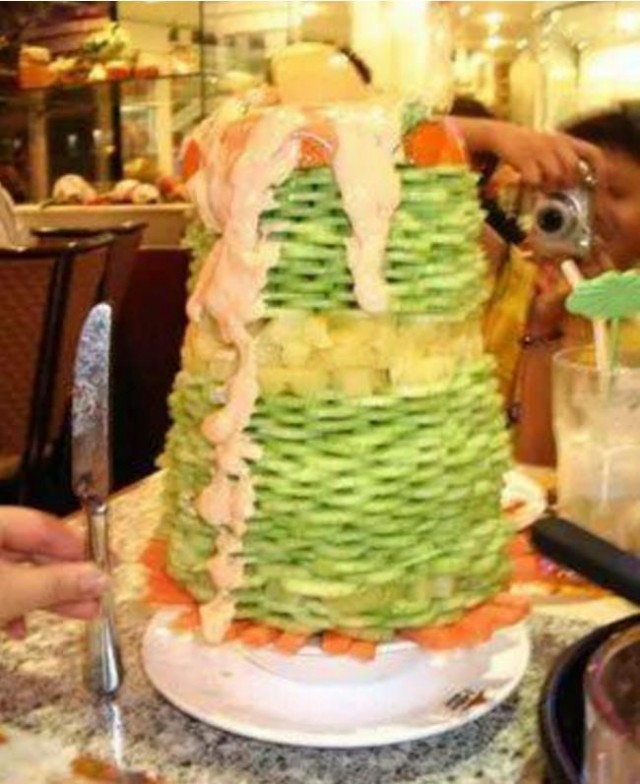 他们用“垒沙拉塔 ” 的方式向小小的沙拉碗宣战,他们用各种建筑的技巧,用蔬菜和水果垒出了一座座九层妖塔,并且把自己的建筑方案上传到社区贴吧里,成为了早年互联网上一个著名的挑战。