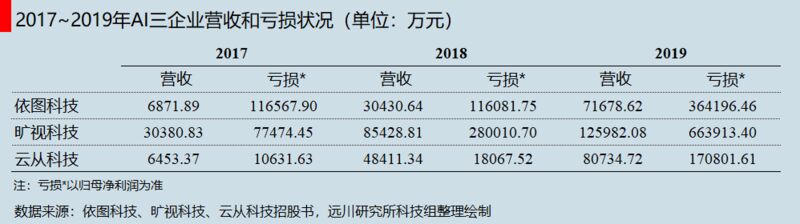 翻开旷视、云从以及依图等AI企业的招股书会发现,伴随三家企业缓慢爬坡的营收,是止不住的亏损。