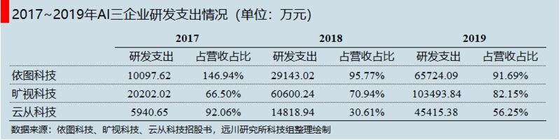 业绩不佳,二级市场自然也不待见。而亏损的重要原因之一是:AI企业特有的高科技、高人才、高研发的“三高”富贵病魔咒。上述三家AI企业,它们近几年的研发费用,少则占到总营收一半,多则高达146.94%。