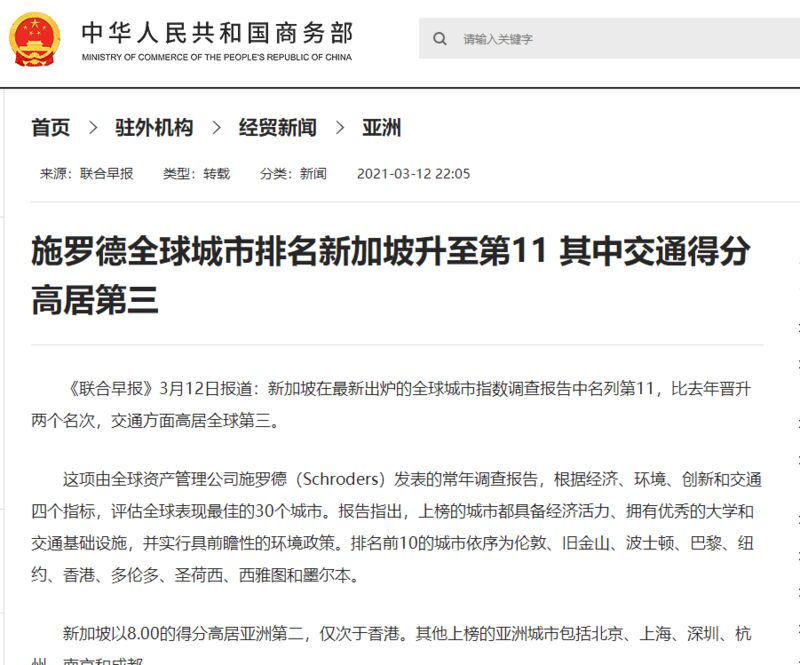 在2021年的3月12日,中国的商务部转发了施罗德的这个榜单。是的,是官网。