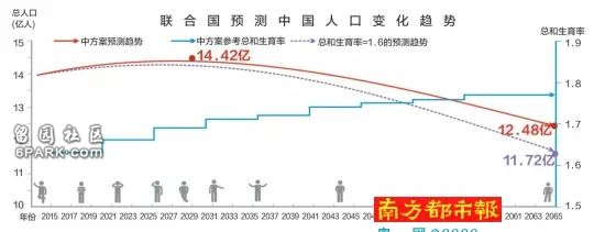 关于中国人口峰值,此前的说法有很多,但最大胆的预测是联合国做的: