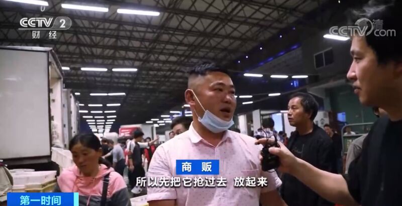 商贩:新鲜的没有了,所以先把它抢过去,放起来。