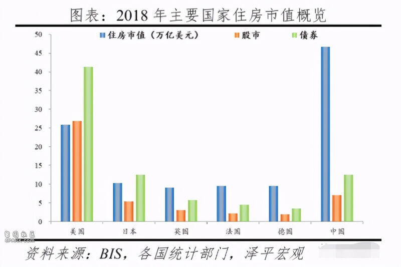 由于美国的金融市场高度发达,股市和债市市值高很正常,相比之下英、德、法三国金融市场相对美国较弱,因此存在与我国的情况类似,即房产市值高于股市和债市市值的情况。