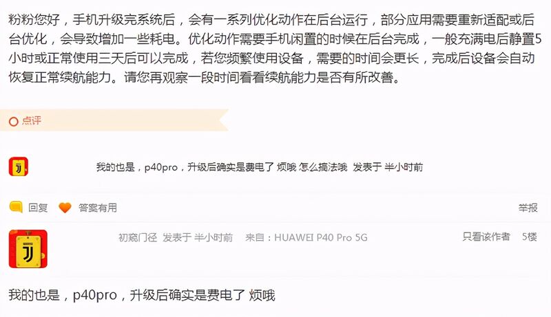针对升级鸿蒙后耗电快的问题,华为官方已经给出答复。