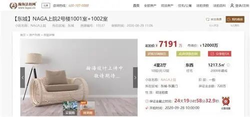 拍卖信息显示,被拍卖的两套房产,每套面积为608.75平方米,评估价1.2亿元左右,起拍价为7190.53398万元。