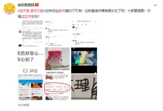 7月25日,一则关于“益禾堂宣传文案”的话题冲上微博热搜。据悉,益禾堂发布的视频显示,在其推出的新品宣传上,益禾堂配上了“空姐的品质吉祥村的价格”“这一大杯够你三四个秘书喝”等文案。