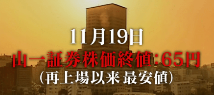 11月19号,木村报道2天后,山一证券的股票价格从3000日元以上一路狂泻,最终收盘价不足100日元。